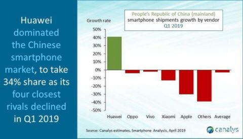 市场调研机构Canalys 于4月30日发布了关于中国智能手机市场的最新出货量统计报告。